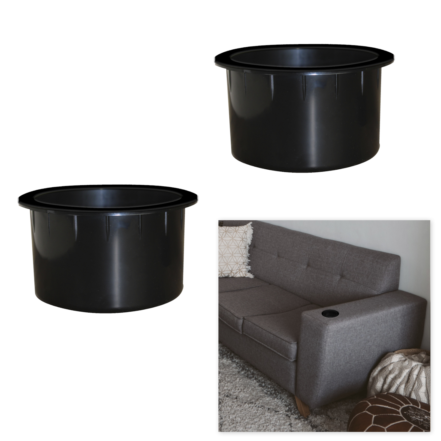 PORTA BEVANDE | Portabicchiere per Divano | Set 2 Pezzi | H.62 D.110 | Nero |